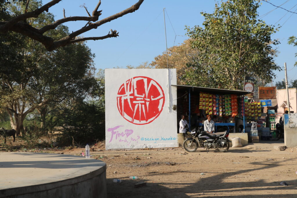 News SHO on the wall, India Painted Feb 10-15, 2025 Central square in Andore Village, Rajasthan, India SHO on the wall, India インドに書の壁画 Title: Ramram, Answers to the children of Andore
